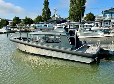 Båten för dig som vill ta dig fram på havet oavsett väder, vind och årstid! Ett vasst aluminiumskrov med överbyggnad i komposit gör att funktion samsas med komfort på ett härligt sätt. Båten är utrustad med det största motoralternativet på 370 hästkrafter. Säljs med avdragbar moms!