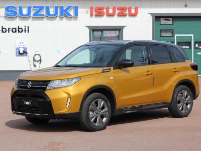 Fyrhjulsdriven Vitara Hybrid med automatlåda i kulören Solar Yellow Pearl / Cosmic Black Pearl. Förnyade Vitara har nu fått multimediasystem uppkopplad till Suzuki Connect, Apple Car Play, Android auto, QI laddare, adaptiv farthållare, LED lysen, mm. mm. Totalpris för detta ex inkl. dubbade vinterdäck är 36797€ – 898 = 35900€!