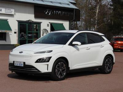 Kona med lilla batteriet på 39kwh. Ändå över 300km räckvidd sommartid. Utrustad med bla. klimatkontroll, farthållare, LKAS, led-lysen, backkamera, parkeringsvarnare bak, Apple Car Play, portabel laddare, sommardäck och dubbade vinterdäck.